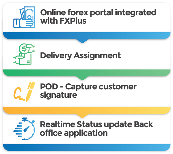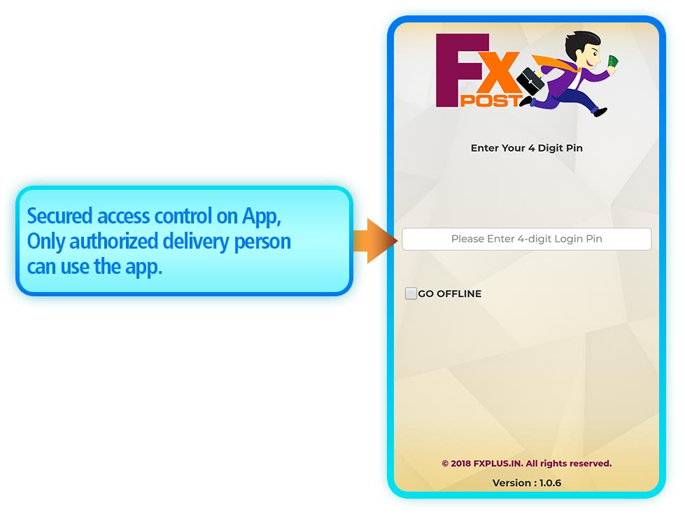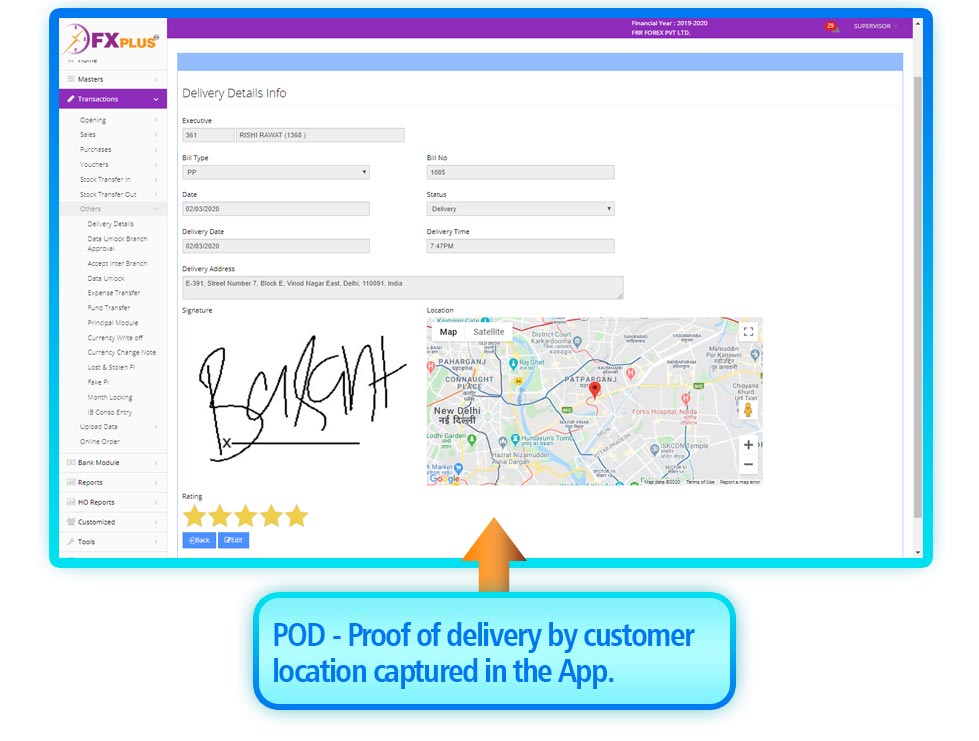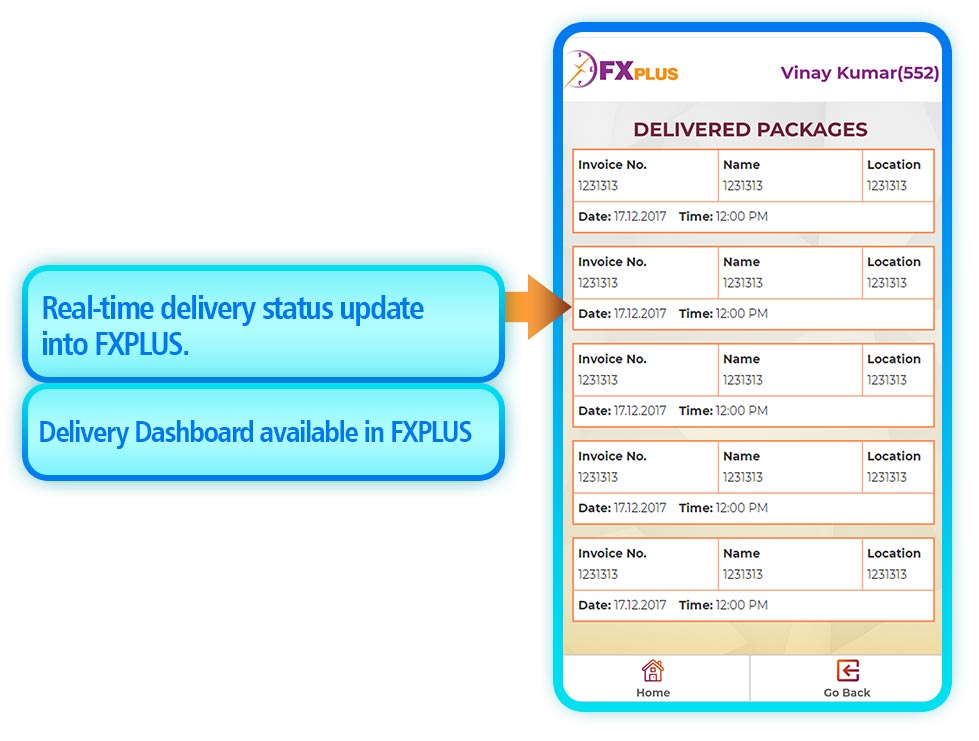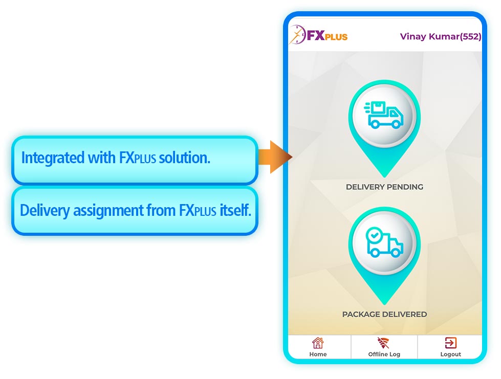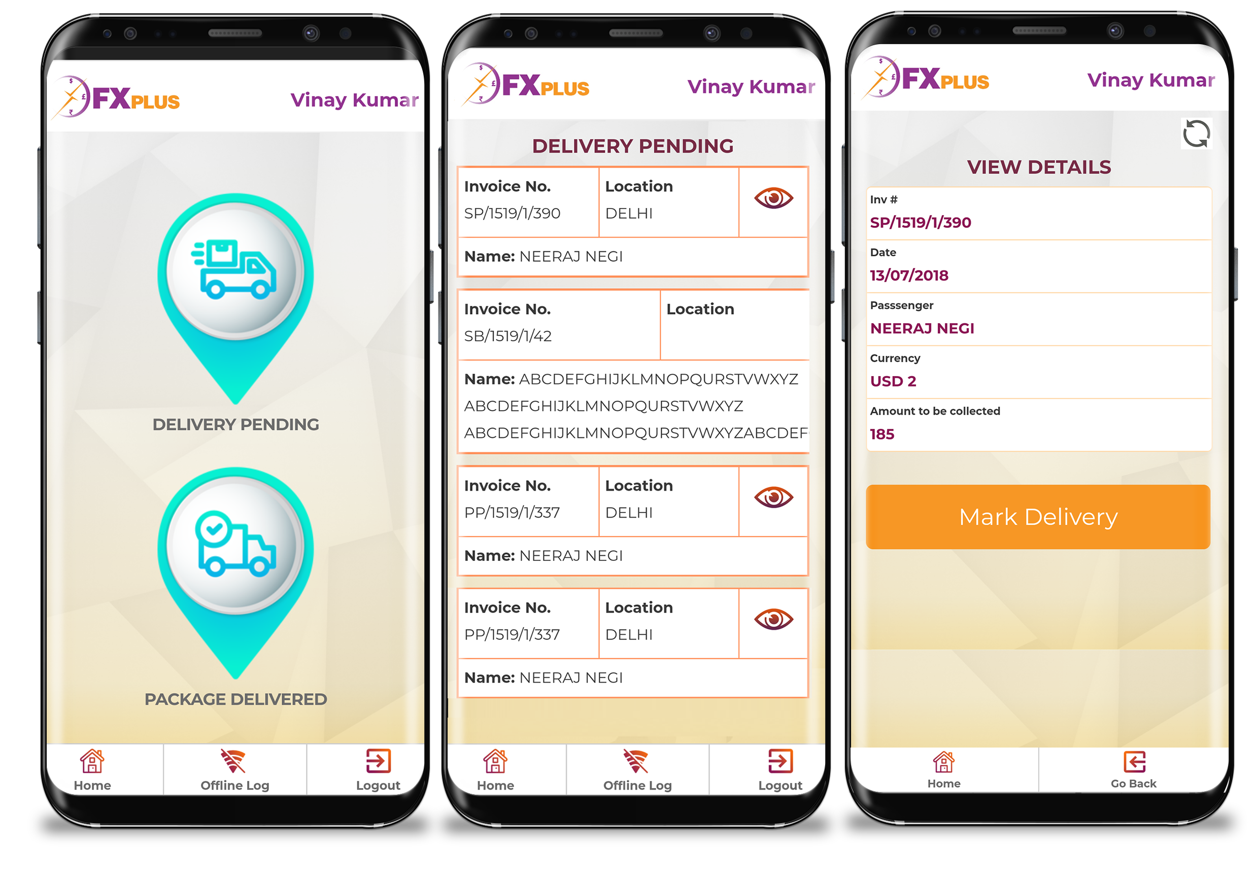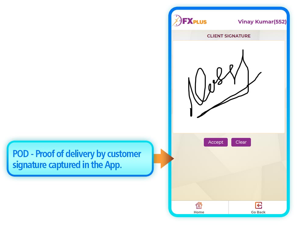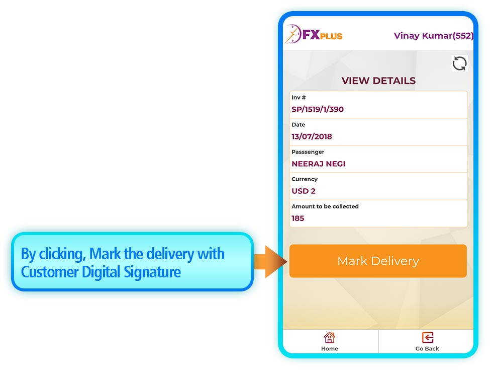 Delivery executive can mark delivery by taking confirmation / signature from customer through this app and FXpost is integrated with FXPlus (web based application to manage front office / Back-office operations for FFMC) invoice module.